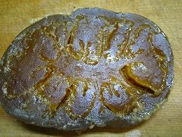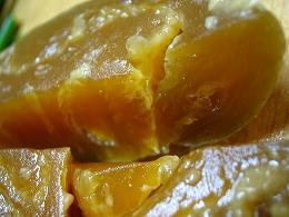 味噌漬けの、タップリと漬かった感が漂う断面だ。浅漬けと本漬け(古漬けともいう)は全く違う。素材が発酵して初めて本漬けというのだ。この本漬けになった果肉は、当初の特性とはまた違う味を発揮する。