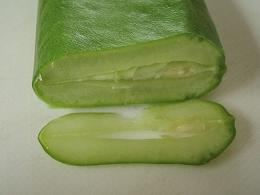 と、お分かりいただけただろうか。そう、実はこの奇妙な形をした物体がナタ豆なのである。この切り口、古事記とかに出てくる鉾(ほこ)の刃に似てるなぁ、とずっと思っていたのだが、とにかくこの特殊な形状がナタ豆の切り口なのである。