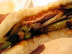 、、、何も言うことはない。甜麺醤(てんめんじゃん)や海鮮醤(はいせんじゃん)をベースにした甘味噌が、ダックの絶妙な皮と肉のぱりぱりに合わさり、それがフンワリとした純白の饅頭(マントウ)に包まれて供される。ネギが香りをプラスし、キュウリが清涼感をそよぎ、口の中の幸福一杯が止まらない。ああ、この北京ダックを10個食いたい、、、