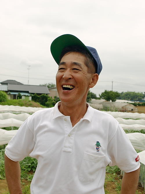 部会とは、農協の中で品目別に分けられた生産者のグループだ。スイカ部会の長、ということになる。200人以上いる生産者を束ねている、重責なのである。彼の着ているポロシャツの右胸に、顔がスイカのキャラクタがプリントされているのがわかるだろうか?富里のトレードマーク「トミちゃん」である。実はこれを着ることが出来るのは部会の役付きの人だけ。そういう誇りに満ちたポロシャツなのであった!