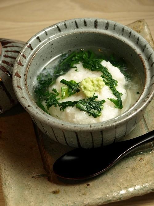 突き出しに出てくる青菜の煮浸しですでに旨い、、、使っている出汁が実に味わい深い。一番だしを惜しげなく使ってるんだろうか。