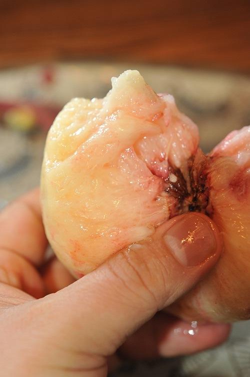 ご覧の通りの変な形。でこぼことした愛嬌のある形状から、「アンパン桃」と呼ばれることもある。日本でも割と桃を栽培する農家さんなら知っており、栽培しているひとも多い。僕も数回食べている。