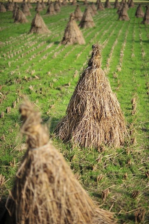 時期的に刈り干しも終わり、自家用の稲ワラを干しているのだろうか、写真のような風景が点在している。