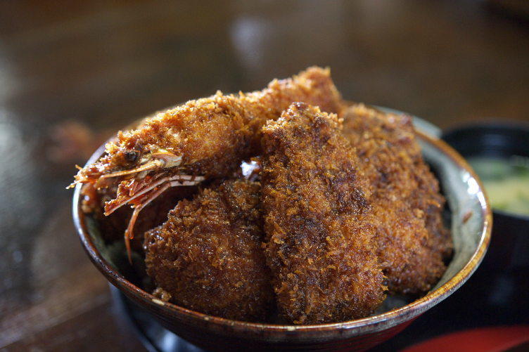 サクラ、エビ、ホタテをよけてみても、どんぶり上のトンカツ占有率はこんなに高い!