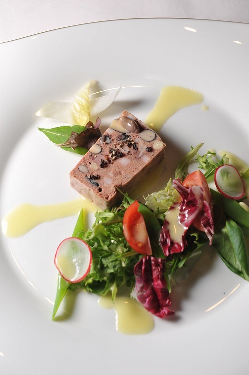 「どうしても風味が淡いので、小鹿の正肉だけじゃなく、レバーと鶏のレバーも混ぜています。」ということだったが、これはジビエ嫌いの人でも美味しく食べられちゃいますね。でも、実は感動したのはシェフお得意の野菜の付け合わせ。ヴィネグレットが本当に美味しかった。