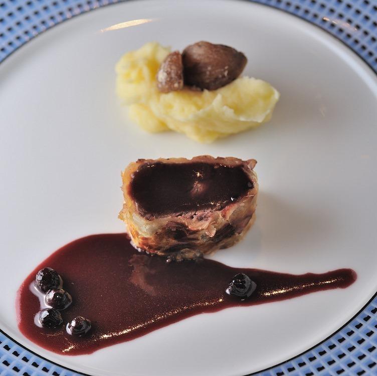 温製料理:エゾ鹿ロース肉のパイ包み焼き、カシス蜂蜜ソース