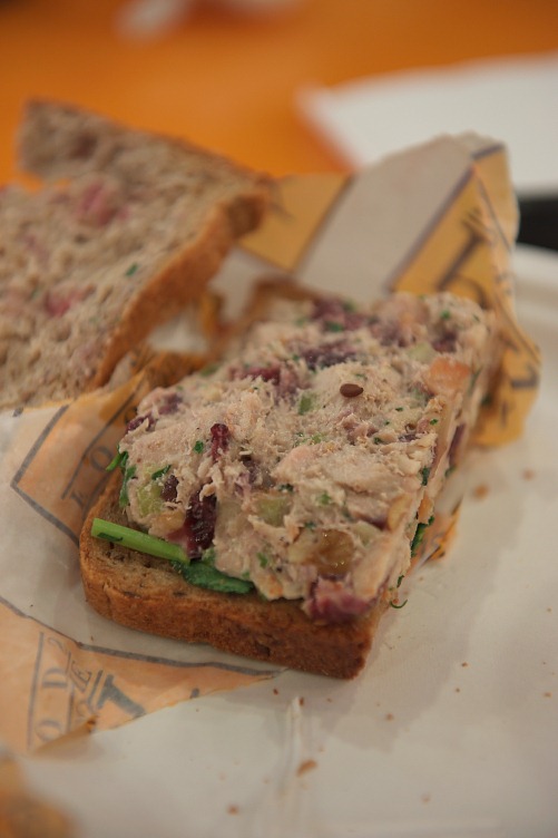 七面鳥とクランベリーですよ、クルミも入ってる。かなりずっしり具が挟んであってイイボリューム。