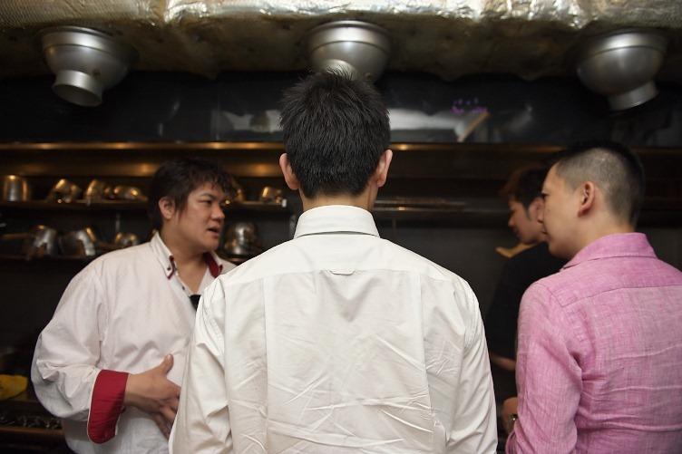後ろ姿は岸田シェフ。右にいるのは、銀座の「青空」のはるたかさんである。
