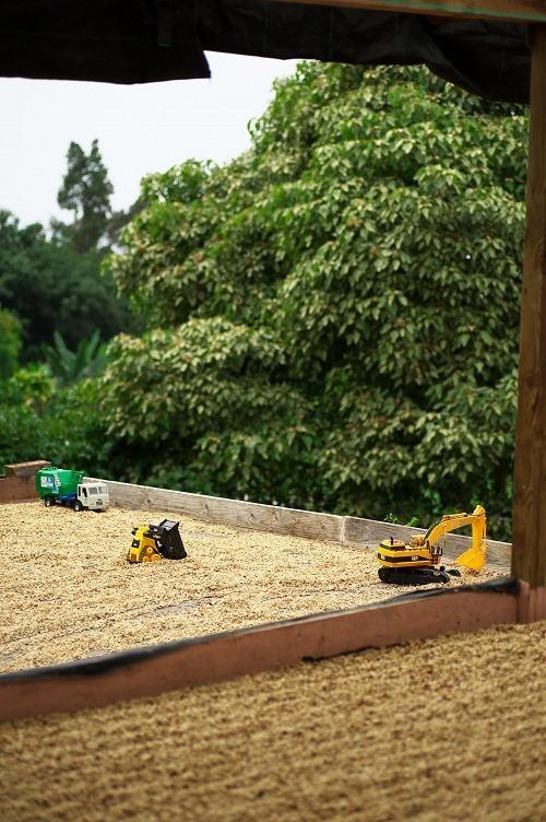 コーヒー乾燥スペースは、彼の格好の遊び場となっているらしい(笑)