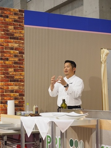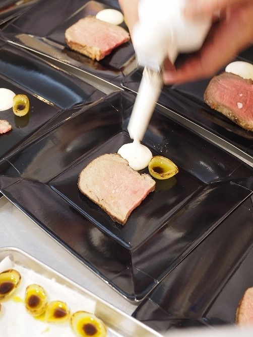 肉焼きは福岡で超人気のフレンチ「Goh」を率いる福山剛(たけし)シェフ。完璧な火入れです。