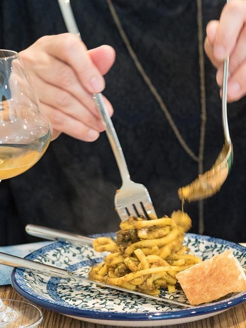 ちなみにこの極太麺で食べられるのは、「黄色いイワシのソース」と「イカキモのラグー」である。パスタはもう一品、「辛めのアラビアータ」があるが、それは中太麺だ。ランチはパスタだけなので、これらをシッカリ味わえるはずである。