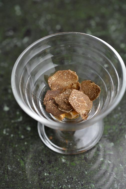 各席に運ばれた、ナメコにトリュフがのったグラスに、、、