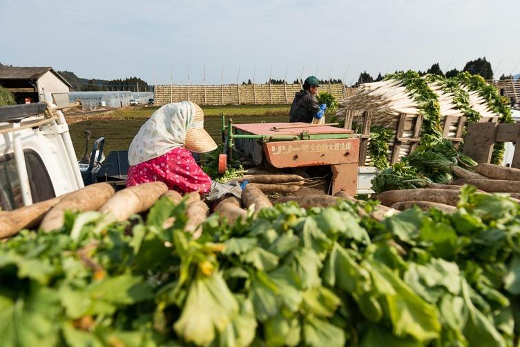 「これから大根を洗うんだよ」と準備を始める谷口ご夫妻。