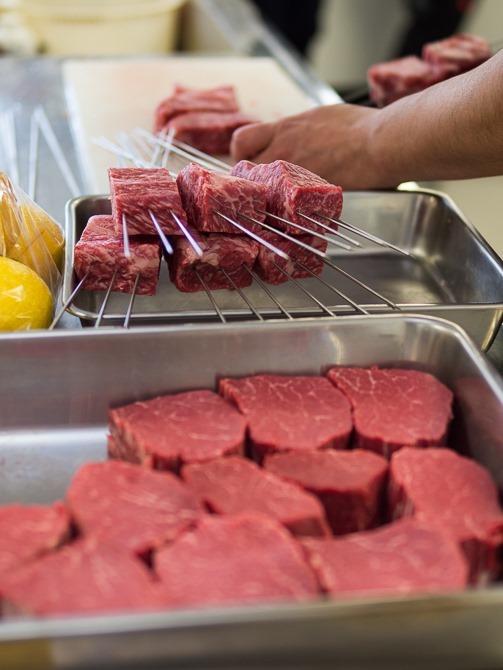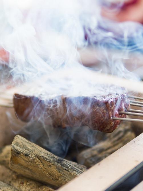 あかうしサーロインは串に刺され、炭火で!
