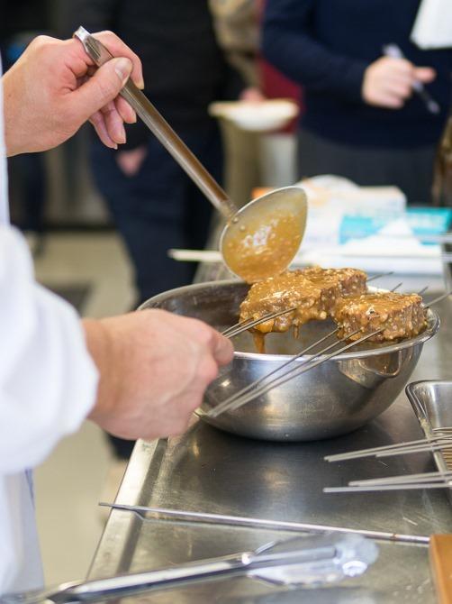 あえて粒味噌の粒感が残る幽庵のつけダレに15分だけヒレ肉をつける。