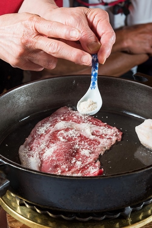 割り下ではなく砂糖と醤油で焼き込んでいく!