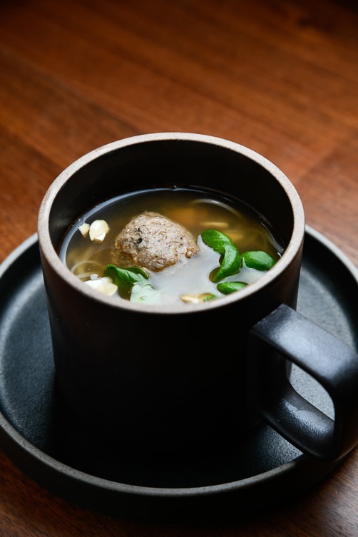 熊本で大人気の手延べ南貫素麺のにゅうめんは、これまででてきた食材の端材のスープで。そう、フロリレージュ川手君にならい、フードロスを極力抑えます。