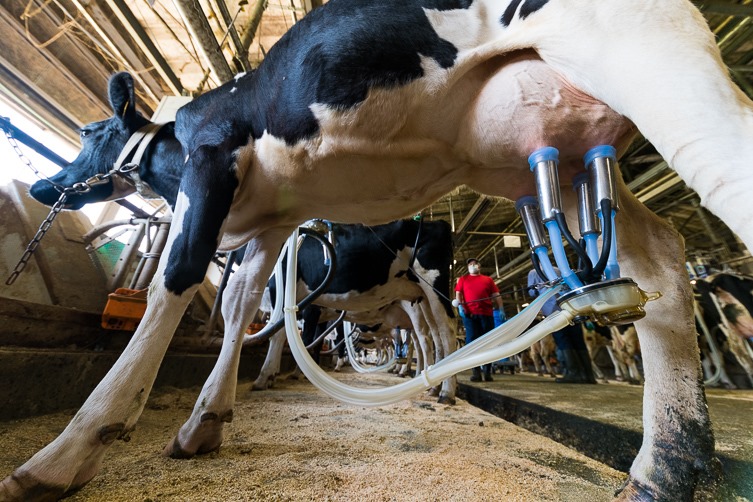搾乳マシン(正式名称は知らんよ)がウィーンと移動します。こういうシステムの有効性を検証するのも大学の役割。