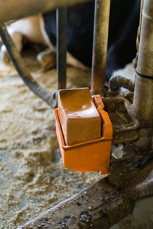 この搾乳マシンは、生乳の流量が弱まると「はい終わり」と搾乳をやめ、スポンと乳頭から外れるようになっている。酪農用機械の世界はかなりオートメーションが進んでいる。本当に大変な作業だからねぇ。