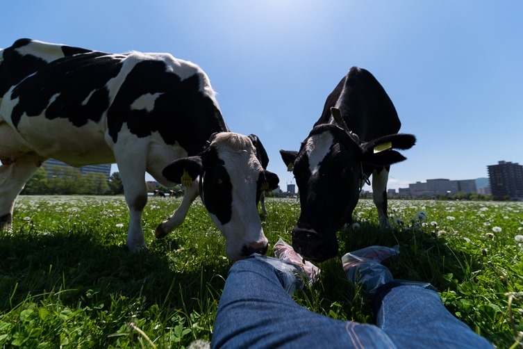 「まあ、ここでは研究のために牛を飼っているので、どういう環境や習慣でストレスを感じるのか?という実験もします。ある一定の条件に置いて、血液を調べると『あー やっぱストレスかかってるわ』という感じで。そこは牛には申し訳ないんですけど、でもここの牛たちは放牧環境で育てますから、うれしがって飛び回ったりしますよ。」