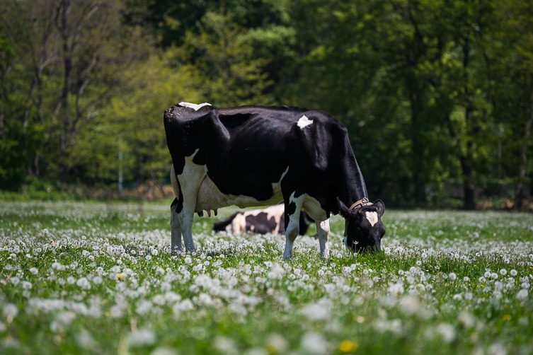 それにしても、ホルスタインの白黒模様は、やっぱりみどりの地面と青空の中に放牧すると、最高に映えると思う。