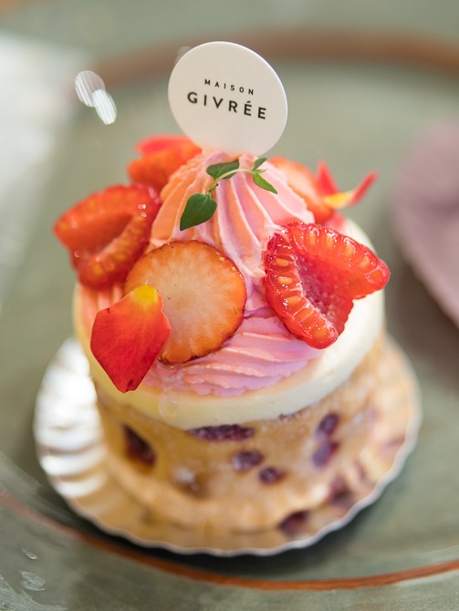 手前はフリッソンルージュ。レモン風味のムースとベリーのジュレ、イチゴとホワイトチョコの生クリームを複雑に組み合わせたものに、ベリー類をちらしている。