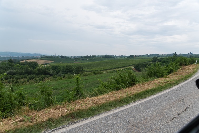 いったいなにを撮っているのかわからないかもしれないが、牧草や餌用のデントコーンなどが植わっているのが、車窓から見える。一言で言えば豊かなのだ。フィレンツェやパンツァーノ近辺では乾燥した気候、土壌は礫質の赤い土壌で、乾いているなあという感じ。ワイン用のブドウにはよいだろうが、湿潤という感じではなかった。それが、トリノ周辺では一気に緑色の穀倉地帯という感じになる。