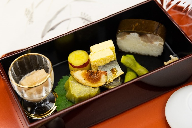 前菜はいづうさんのサバ寿司が盛り込まれている!