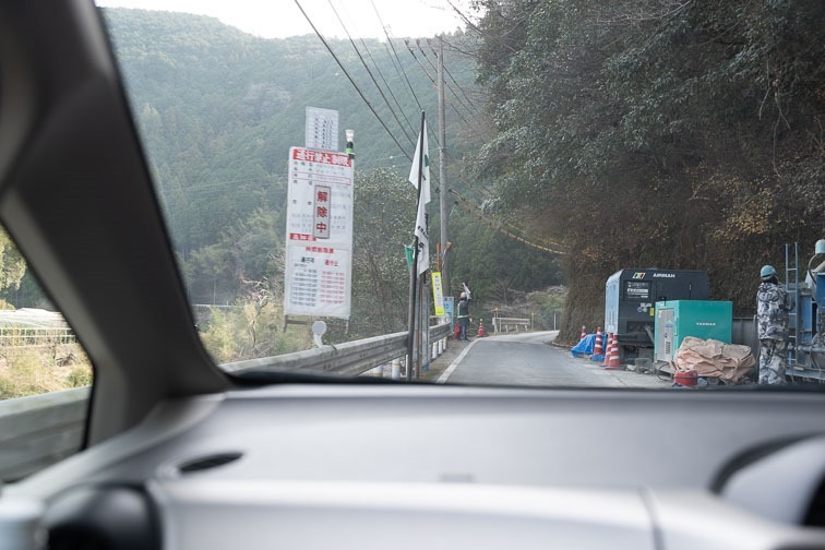 山間部にさしかかると、道路復旧の工事がいまも行われている。