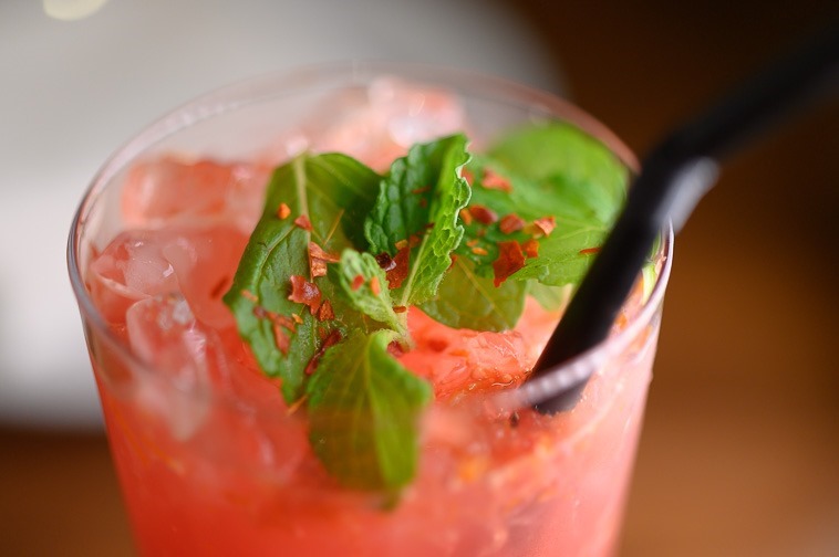 この日ぼくはノンアルコール。アメリカで流行っているシュラブという、お酢と果汁、炭酸を組み合わせたドリンクを。いまはブラッドオレンジのシュラブで、これがまた美味しい。