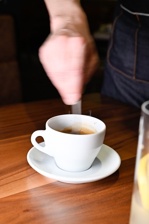 「ドゥッピオ(ダブル)なら角砂糖二個入れて、スプーンでゆっくり40回程度掻き混ぜるんですよ。そうするとクリーミーに乳化するんですね。それを呑むのが美味しいんです」