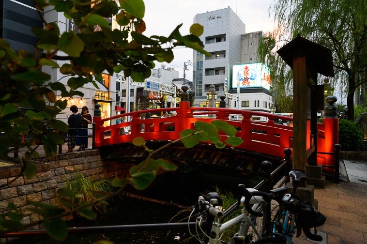 はりまや橋といえばはいこの小さな橋!それを渡って、ちょっと歩いて対岸へ渡ります。