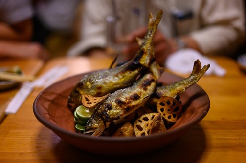 肉より魚釣りのほうに忙しい、三谷ミートの三谷専務(写真右)です(笑) いい型の鮎でしたねぇ、旨かった!