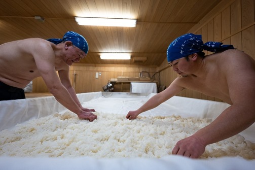 わざとブラしているのではなく、彼らの動きが秒速で速いので、こうなっちゃうのである。そして、麹の仕込み。