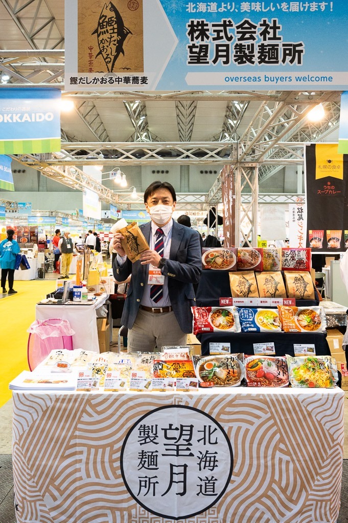 望月製麺所といえば、北海道は登別で、ここまで国産小麦が注目される遙か前から、内麦で製造した麺を製造販売してきたすばらしいメーカーだ。先日、幕張メッセで開催されたスーパーマーケットトレードショーで、そろそろ帰ろうかなと思っていたら「やまけんさん!」と呼ぶ声が。マスクしてるのになんでわかるの?と思ったら望月社長が!