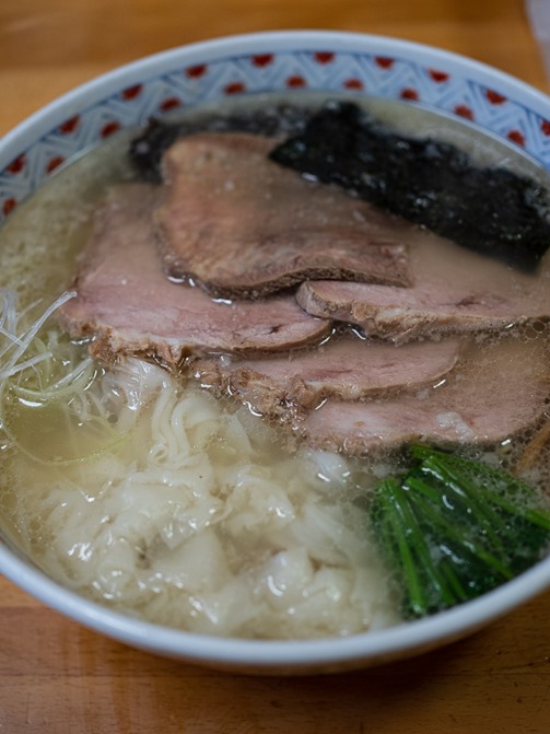 この日は塩海老ワンタンそばにチャーシュー追加という贅沢を。しっかり具の入った海老ワンタンを、さきの餃子のタレに漬けて食べるという楽しみが最高です。
