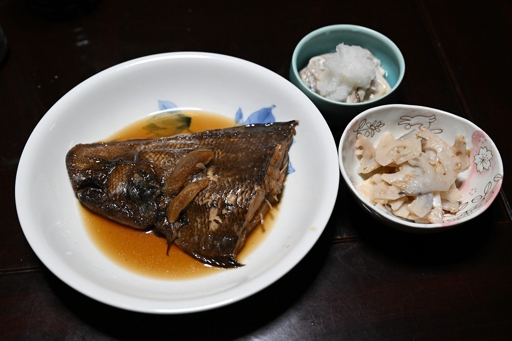 「あんたどうせメシくっとらんとやろ?」と、夜ご飯までいただいてしまうワタクチ。この煮付け、舌平目ですよ、こちらの方言では「クチゾコ」。