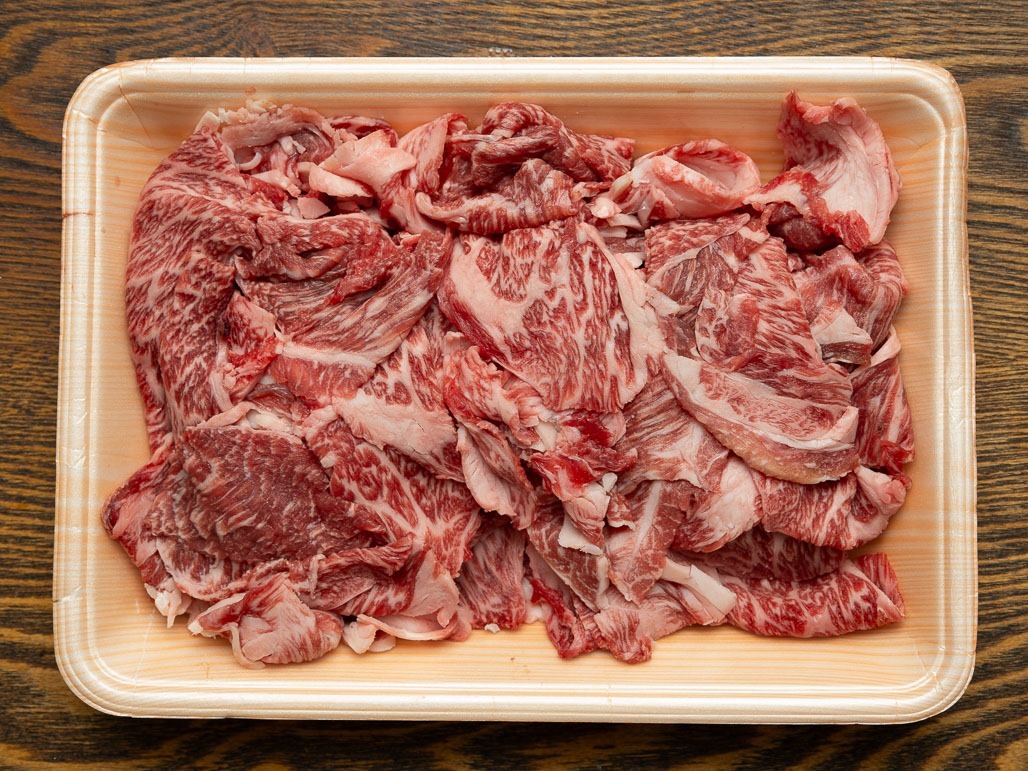 大津家で育ててきた経産牛を、肥育農家である叔父さんが仕上げた個体をスライス肉にしたという。「センパイ、食べてみて!」と送ってきてくれた肉を丁寧に冷蔵庫解凍すると、いい感じにサシが入っている。繁殖段階では南阿蘇で放牧し、粗飼料を食べさせているが、叔父さんの肥育牧場では配合も食べさせているようだ。ド赤身のあか牛もおいしいが、こうした程よいサシが入っているあか牛にくもまたおいしいはず。