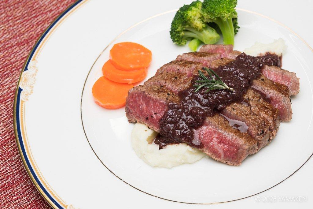 「やっぱり彼女は火入れが上手いね、難しい肉も一発で決めてきた。」