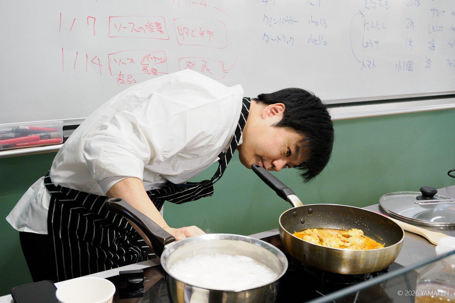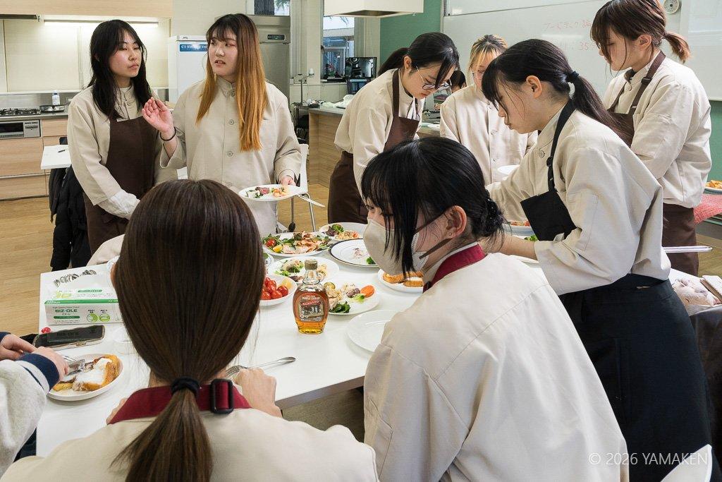 こんな感じで、樋口直哉先生の授業が繰り広げられています。料理の写真ばっかりだけど、実際には座学がしっかりあって、調理理論を学び、それを実証する形で調理を行い、試食という流れ。この授業は確実に書籍化できる。楽しみにしてます。