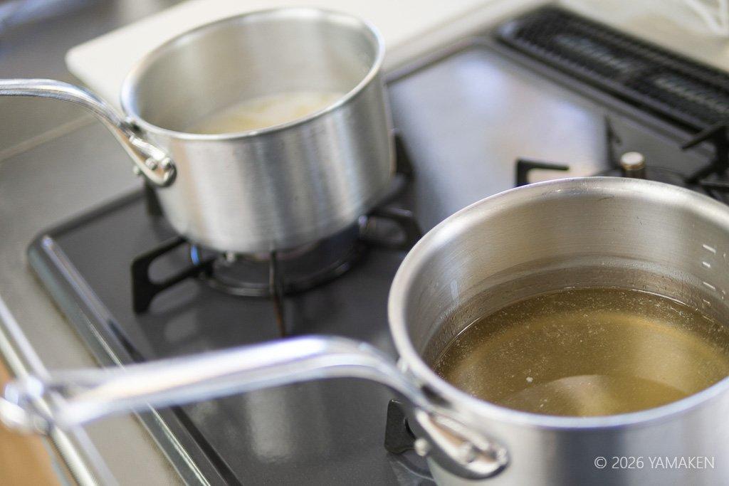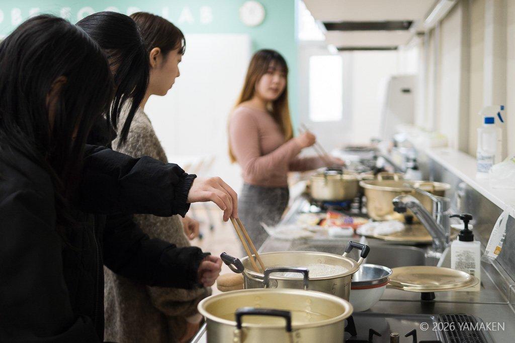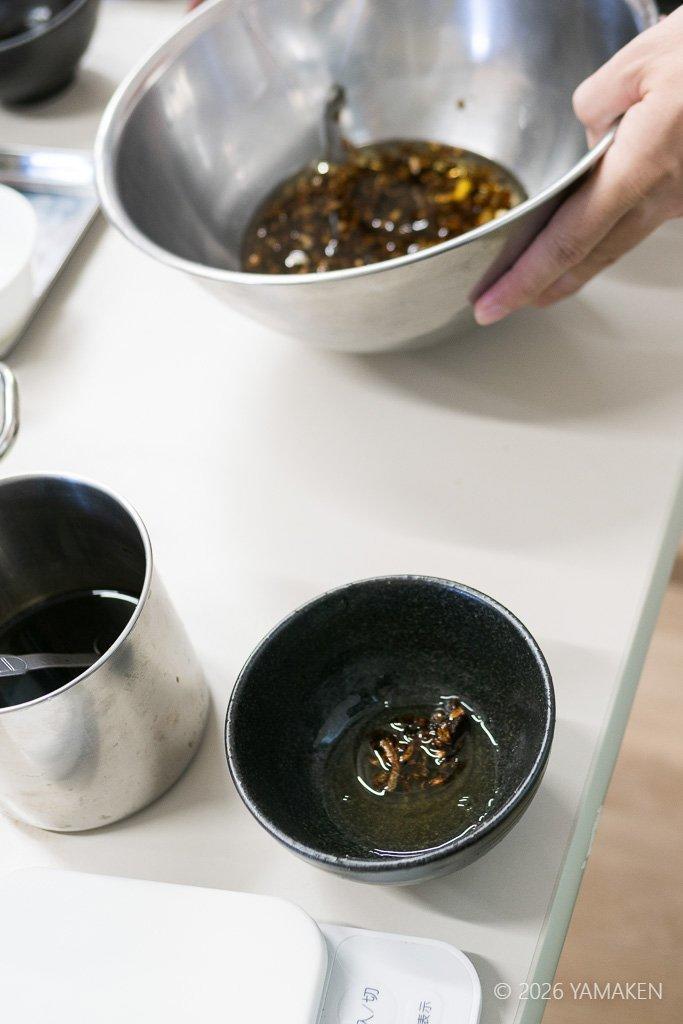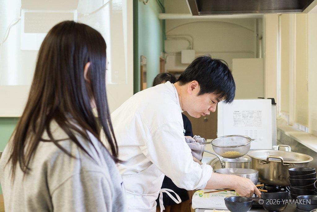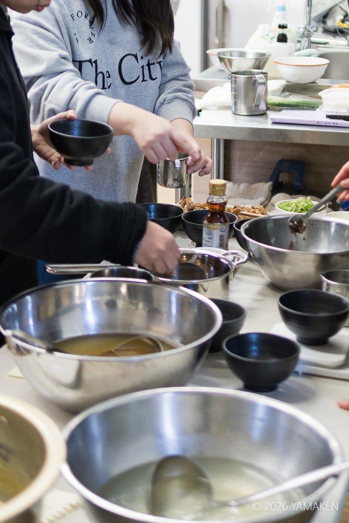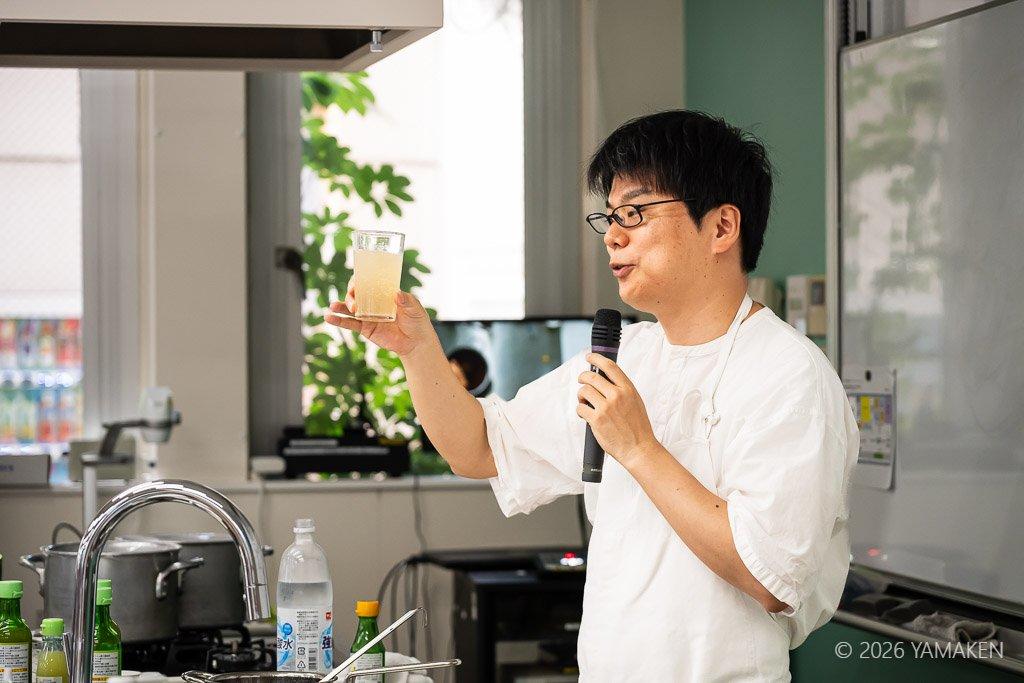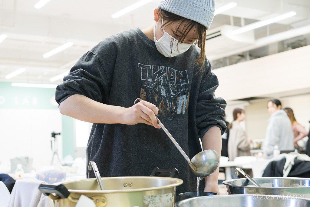 魚介ダシは授業中にさっととったもの。フードラボ内によいダシの香りが満ちる!